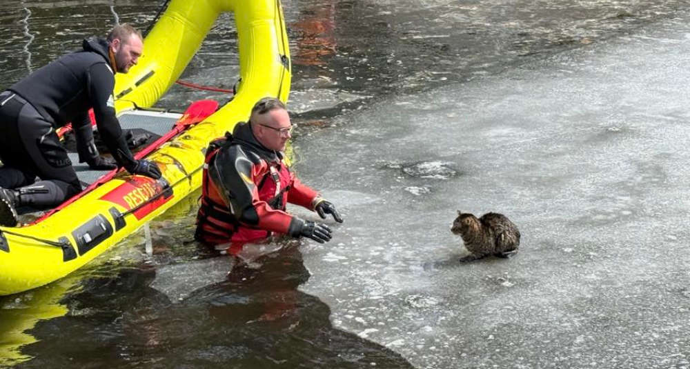 Saratoga County Firefighters Rescue Stranded Cat from Thin IceNo paws for panic, firefighters got there just in time
